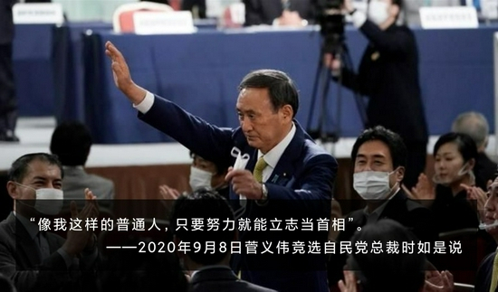 “一门三相”、 “父子宰相”,世袭政治在日本政坛屡见不鲜。与竞争对手相比,菅义伟出身秋田县农民家庭,连大学都是半工半读勉强读完,可谓名副其实的“平民”。