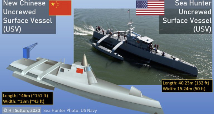 只是作为美国媒体眼中的SSN(X)主要对手之一,中国海军在反潜力量方面也在快速发展。美国海军协会网站11日称,卫星照片显示,“中国海军正在秘密测试两种无人作战艇”,其中包括号称“世界最小盾舰”的JARI-USV多用途无人作战艇的放大版。此前相关介绍显示,该无人作战艇长 15 米,宽 4.8 米,排水 20 吨,配有各种作战武器,可在自主航行的基础上实现对海、反潜和防空等军事用途。报道提到,中国还展示了类似美国海军“海上猎人”的无人反潜舰艇。根据美国海军的评估,这类无人反潜舰艇在长时间追踪水下目标时有突出优势。报道总结说,“中国将前所未有的重心放在无人作战系统上”。