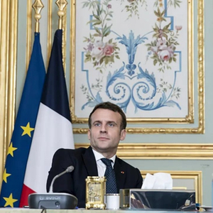 2月25日,法国总统马克龙参加欧盟领导人视频峰会。新华社发(欧盟供图)