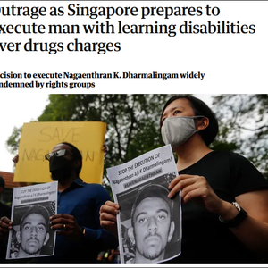 同时,一些“人权组织”也敦促新加坡政府本周停止对这名叫做纳加德兰(Nagaenthran K。 Dharmalingam)的男子执行死刑,也称其智商不高,并声称他有“学习障碍”(learning disabilities),而死刑这一判决是“对国际法的残酷违反”。目前,一份声援纳加德兰的网上请愿书已获6.2万个签名支持。