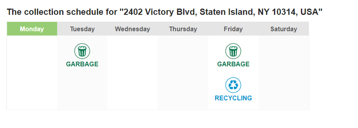 多名用户称,垃圾车未在周二和周五出现。而纽约市卫生局网站显示,每周二和周五是斯塔滕岛和南布鲁克林的垃圾清理日。