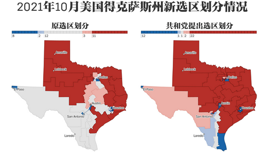 当然,共和党自己也绝非“白莲花”。2021年10月,共和党控制的得克萨斯州划分新选区。根据最新人口普查结果,得州可增加2个国会选区,将总选区数增至38个。你方唱罢我登场,轮到共和党上手画“蝾螈”。