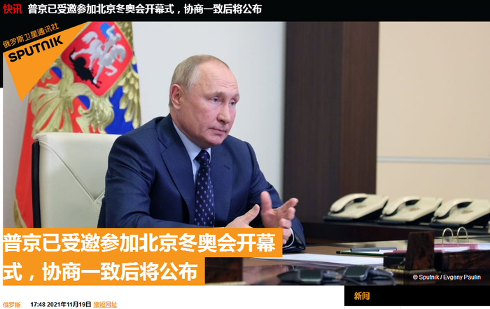 原标题:快讯!俄媒:普京已受邀参加北京冬奥会开幕式