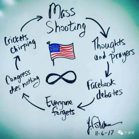 大规模枪击案→思考和祈祷→社交媒体大辩论→人们遗忘→国会无动于衷→岁月静好→新的大规模枪击案……