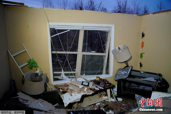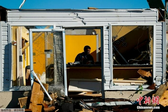当地时间12月12日,美国肯塔基州,龙卷风过后,当地住宅受损严重,一片狼藉。美国中部地区遭到龙卷风侵袭,多州11日确认有人遇难,目前龙卷风灾害已造成超过百人死亡,肯塔基州灾情最为严重。