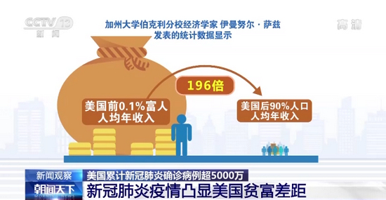 前0.1%富人人均年收入是后90%人口的196倍 疫情凸显美贫富差距