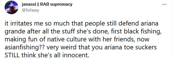 更有人指责A妹有“Asian Fishing”的嫌疑。“Asian fishing”一词是指没有经历过亚裔被压迫的阶级痛苦,却在外表上打扮成亚裔获利或取得关注的行为。