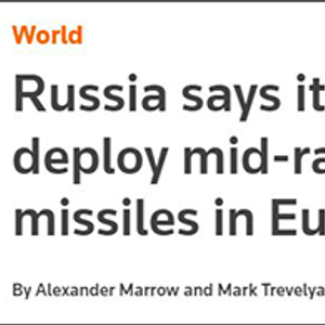 尽管如此,路透社今天依然称,目前正值俄罗斯与西方国家的关系正处于冷战结束后最紧张的时期,里亚布科夫的“俄方或被迫部署中程核导”言辞“加剧了欧洲局势的紧张气氛”。
