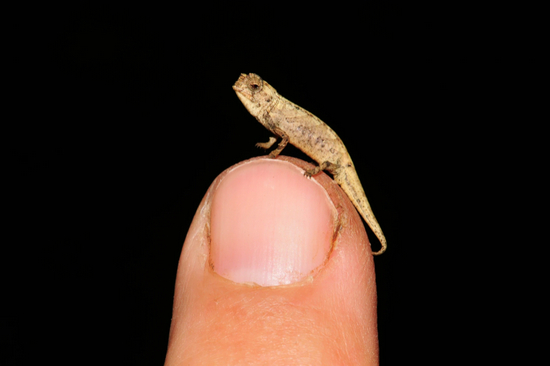 今年2月,科学家宣称在马达加斯加北部雨林中发现新物种变色龙,将其命名为“纳米变色龙”,其身体仅有葵花籽大小,可能是全球最小的爬行动物。该发现引发了关于脊椎动物体型下降的大胆猜测,同时,更加凸显马达加斯加地区令人震惊的高度濒危生物多样性。科学家认为,该物种很快会被列入极度濒危物种。