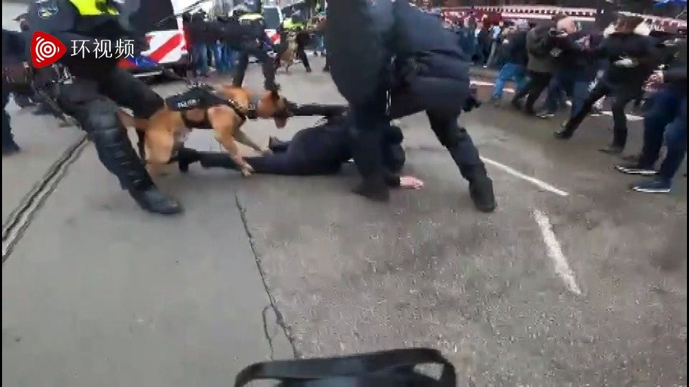 荷兰首都爆发反封锁抗议,警察放狗撕咬示威者