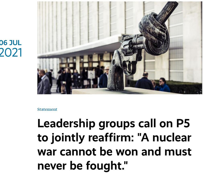 去年7月6日,欧洲-大西洋安全领导小组(EASLG)、欧洲领导网络(ELN)、亚太领导网络(APLN)的代表呼吁说,这一原则对于减少武装冲突风险和核战争威胁至关重要。它为减少存在的共同风险提供了基础,包括气候变化和全球公共卫生。这一原则也是《不扩散核武器条约》(NPT)的核心,该条约的序言承认“核战争将给全人类带来毁灭,因此需要尽一切努力避免这场战争的危险,并采取措施保障各国人民的安全。”