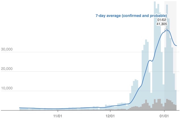 约翰斯·霍普金斯大学的数据显示,过去一周美国平均每天有超过75.42万例新增病例,为去年冬季峰值平均值的3倍。另据美国卫生与公众服务部的数据,12日在全美范围内,有超过15.1万名美国人因新冠住院。