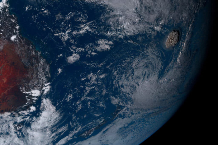 此次喷发的阿哈阿帕伊岛火山位于南太平洋西部的岛国汤加附近65公里处,距澳大利亚约4800公里。火山本身非常巨大——高约1600多米,长约20多公里,位于两个小岛之间的地表下约150米处。