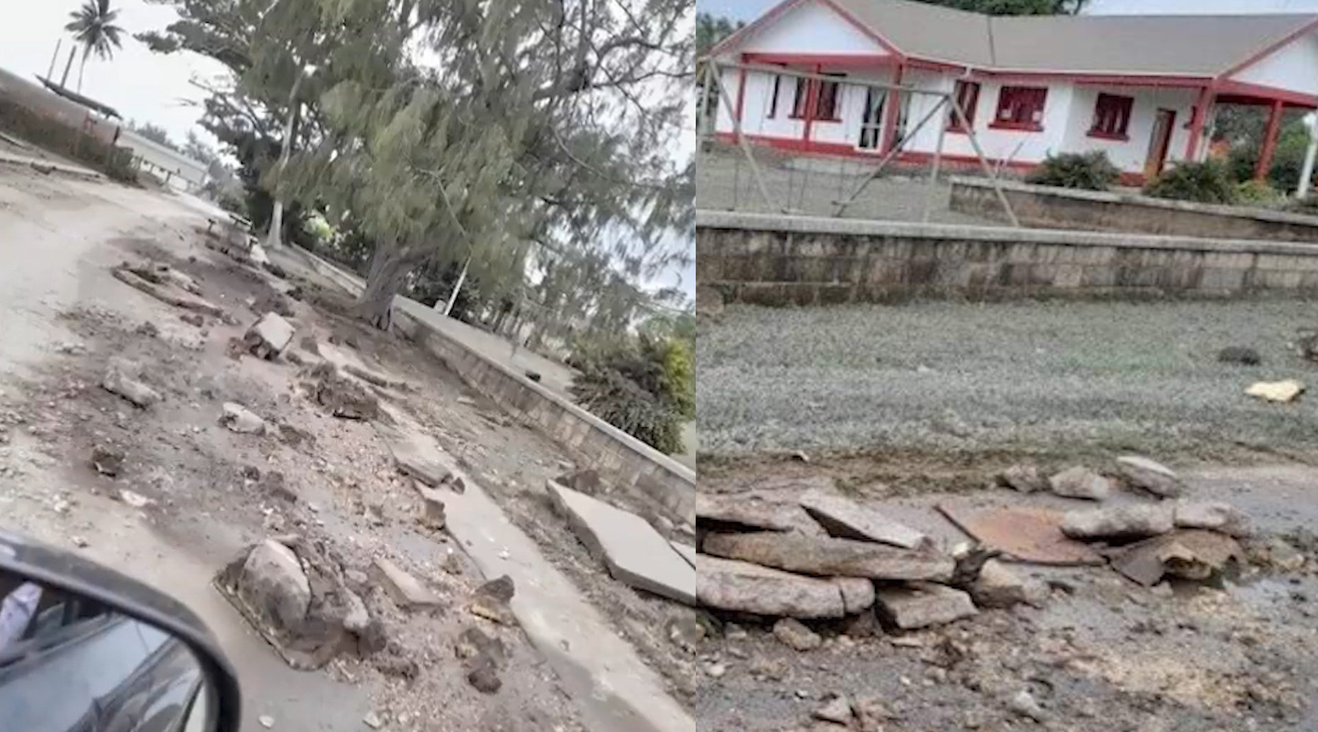 在火山喷发和海啸发生后,不断有汤加受灾情况的照片被上传到网上,从图像中可以看到街道上散落着大块的混凝土、石头还有树木。