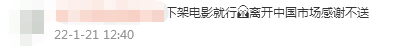 还有人提醒说,“电影可以下架了”,“离开中国市场,感谢,不送”。