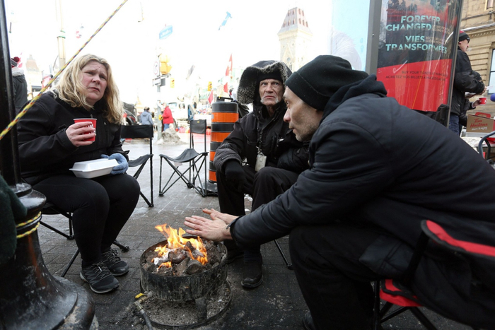 2022年2月9日,加拿大渥太华,当地抗议者烤火取暖。图|人民视觉