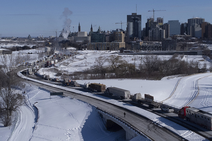2022年1月30日,抗议车队阻塞了加拿大首都渥太华的一条道路。