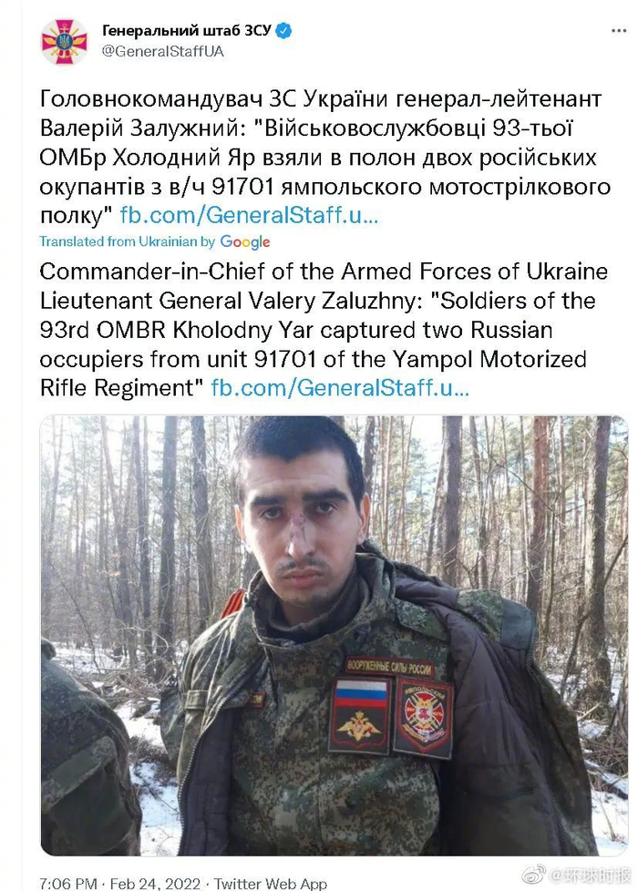 [乌克兰展示两名俄军俘虏后,俄方展示了14名乌军投降画面]继乌克兰官方展示了2名俄军士兵被捕的画面后(图1),俄方展示了14名乌克兰士兵投降的视频(图2)(来源:环球时报)
