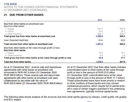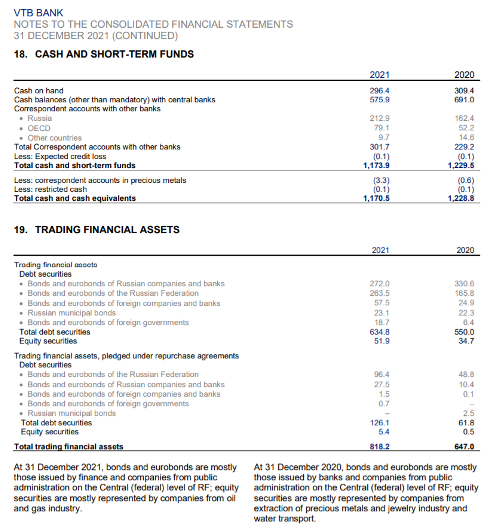 另一方面,俄罗斯大型银行这两年已经大幅压降了海外资产的头寸。例如VTB的2021年的年报显示,其代理行账户中OECD总余额约791亿卢布,交易性金融资产中非俄罗斯本土债券的规模187亿,从其他银行的银行的应收账款中,来自OECD银行的账款为326亿卢布。三者合计1300亿卢布,占其总资产规模的比例还不足0.6%,占其净资本的比例也仅仅5.8%。