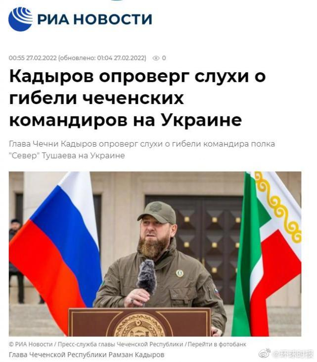 据俄新社27日报道,俄罗斯车臣共和国领导人卡德罗夫在社交媒体上发文驳斥了有关车臣一支部队在乌克兰被歼灭的消息。