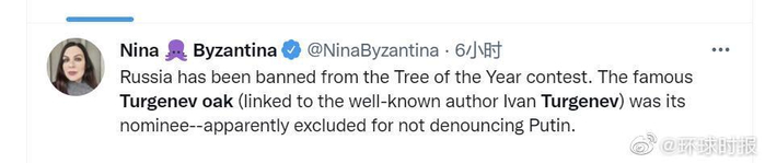 对于这一消息,一名俄罗斯作家在推特上打趣称,这棵橡树显然是因为没有谴责普京而被制裁。(环球时报新媒体)