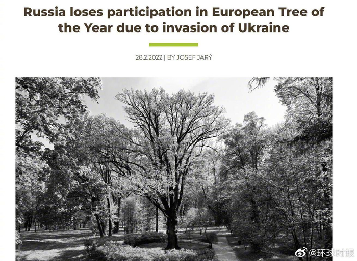 当地时间2月28日,“欧洲年度树木”评选活动的组织者在其官网宣布,俄罗斯被禁止参与“欧洲年度树木”的评选。