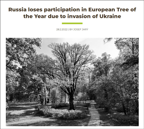 当地时间2月28日,“欧洲年度树木”官网发布公告,加入“国际孤立俄罗斯的行动”,禁止俄罗斯参加欧洲树木年度评选。
