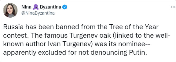 与此同时,一些“制裁”正向着匪夷所思的方向发展。继俄罗斯的“猫”被制裁后,一棵俄罗斯古树也没能幸免。
