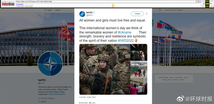北约妇女节推文翻车 图中乌克兰女兵佩戴纳粹标志