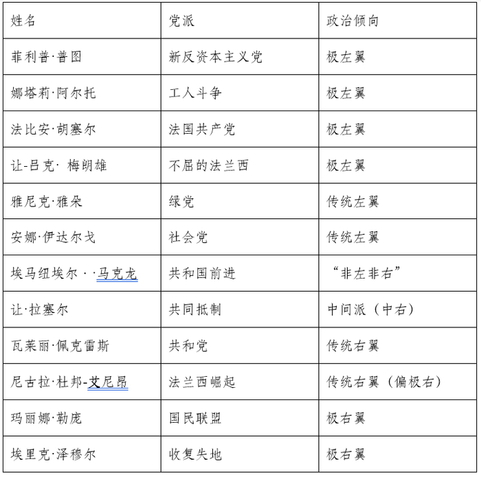 附:2022年法国总统大选候选人名单