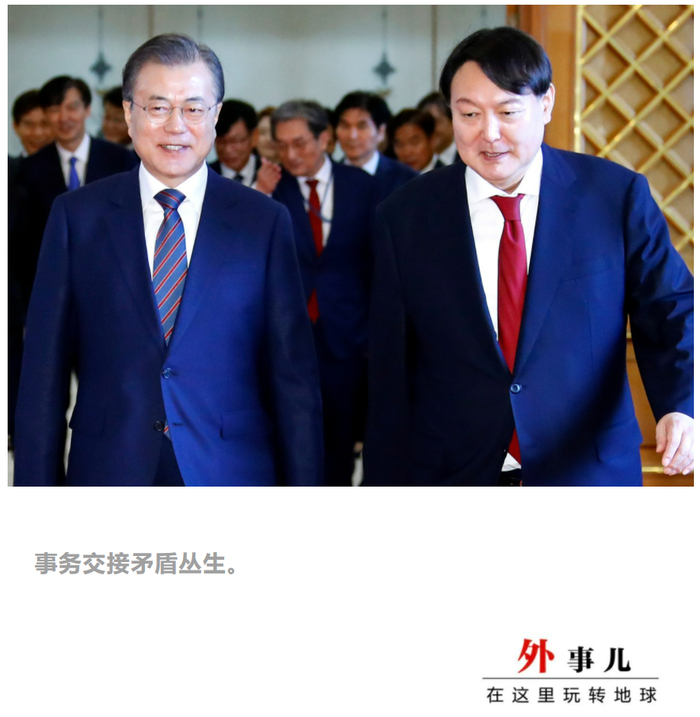不仅没能见面相互问候,在此期间文在寅政府和尹锡悦交接团队还因总统办公室搬迁、人事任命等问题,频起冲突,甚至有韩媒评价称,这在一定程度上体现了新旧政权的对立。