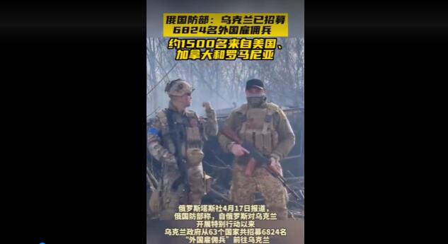 俄国防部:乌克兰已招募6824名外国雇佣兵 ,俄方已清除1035名