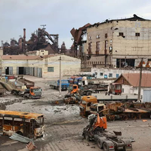马里乌波尔伊里奇冶金厂厂区内的车辆残骸 图:俄罗斯卫星通讯社
