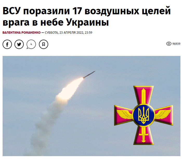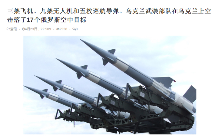 我们先来看看乌方是怎么说的。按照乌克兰通讯社、《真理报》等主流媒体的报道,乌克兰武装部队空军司令部宣布,23日,乌军击落了17个俄军空中目标。