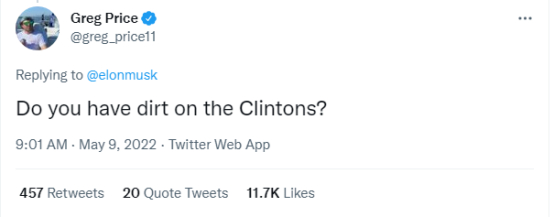 比如有人开玩笑说,马斯克一定是掌握了“克林顿夫妇的丑闻”。RT解释称,一些美国人认为,与美国前总统克林顿和前国务卿希拉里有着“某种联系”的人总会“神秘死亡”,例如1993白宫代理法律顾问文斯-福斯特、美国亿万富翁爱泼斯坦等人,虽然他们的死亡均被认定为自杀,但多年来一直受到质疑。