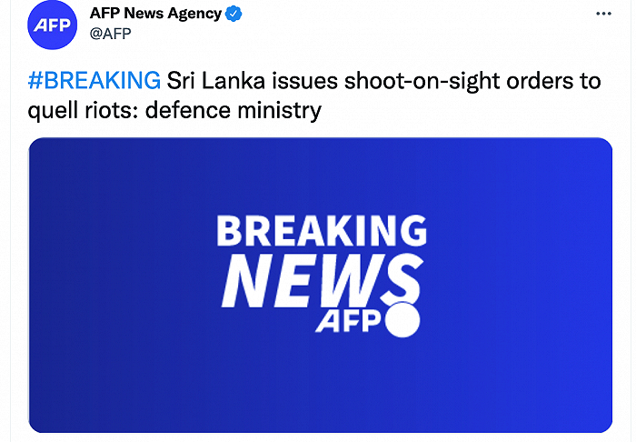 外媒:斯里兰卡发布“就地枪决令”以平息暴乱