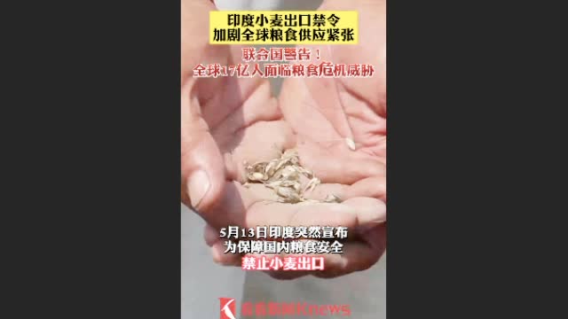 然而,印度禁止小麦出口的消息,进一步加剧了全球食品供应紧张局势。5月14日,全球第二大小麦生产国印度宣布,由于高温导致减产,为保障其国内粮食安全,将立即禁止小麦出口,成为最新一个禁止小麦出口的国家。消息发布后,小麦价格本周一飙升了6%左右。