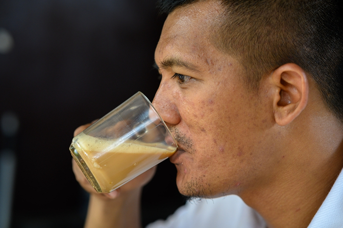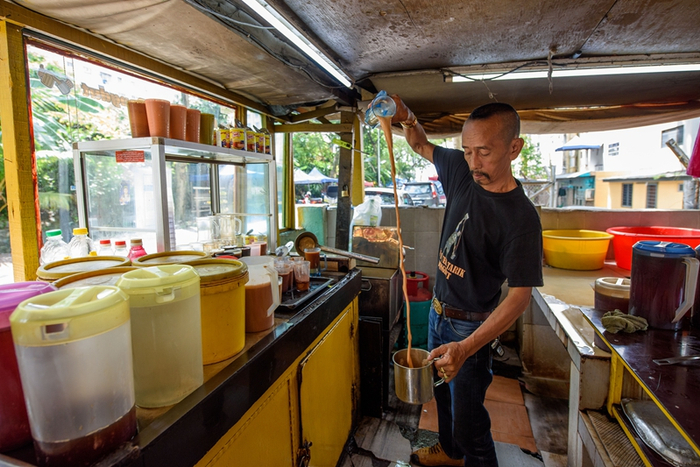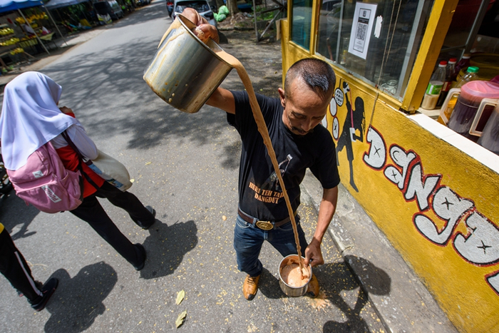 ↑5月18日,一名男子在马来西亚雪兰莪州的必打灵查亚饮用拉茶。