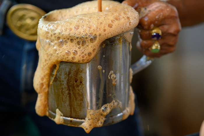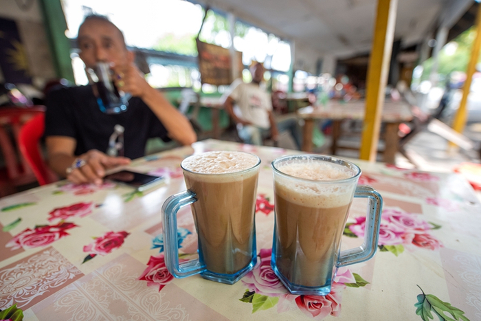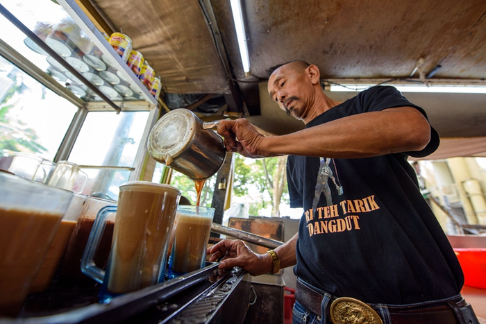 拉茶是马来西亚最普遍和最受欢迎的国民饮料之一。拉茶的主要成分是茶叶和炼乳,其制作过程是使用两个大茶缸,把冲泡好的茶水与炼乳混合后来回多次从高处往下倒,动作犹如将茶汤在两个茶缸间来回拉,这样可以使茶水和炼乳混合更为充分。拉得越长,起泡越多,茶香与奶香越能获得充分发挥,口感也会更加顺滑。