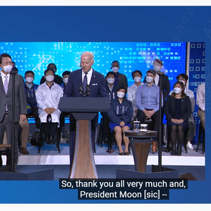 “非常感谢你们,您,文总统……尹,感谢你们所做的一切。”从这段白宫Youtube频道上的视频可以看到,拜登在讲话过程中,有几次提到并都准确叫出了尹锡悦的名字,但在讲话快结束时,却将尹锡悦错叫成文在寅。