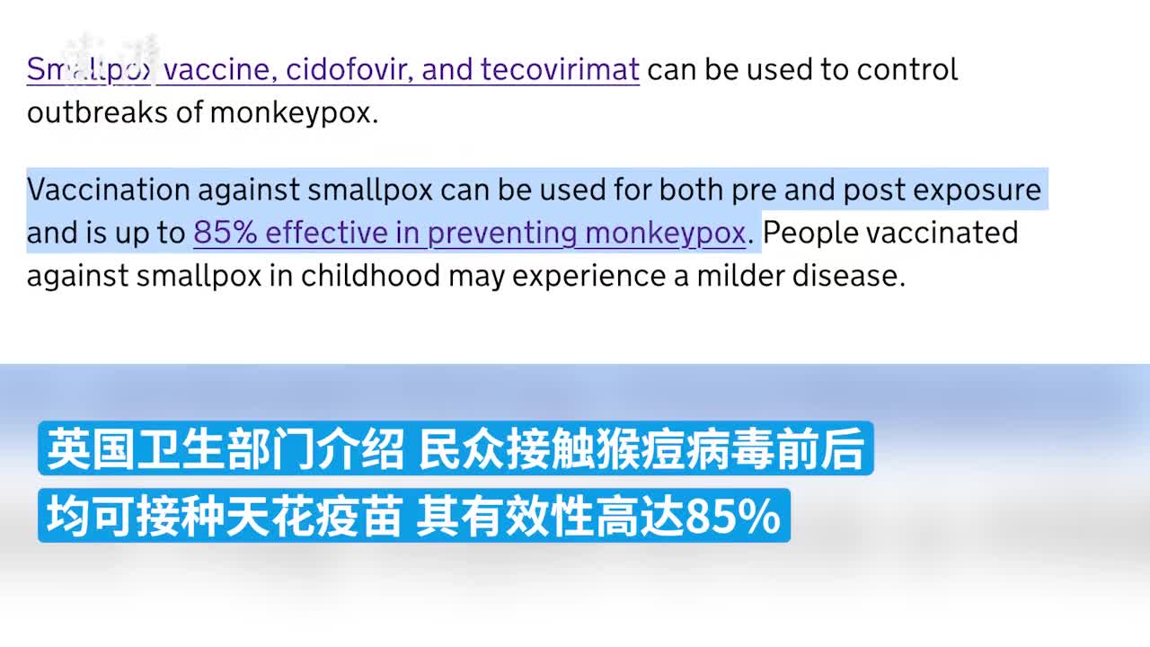猴痘病毒与天花病毒属于同一种属,经过临床研究数据显示,天花疫苗对猴痘病毒的有效率达到85%。