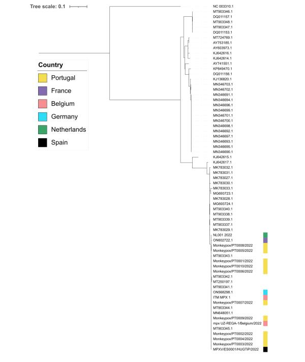 此前,葡萄牙国家卫生研究所的约翰。保罗。戈麦斯(João Paulo Gomes)及其同事已公布了10份葡萄牙猴痘患者携带的猴痘病毒基因组测序报告,并分析指出,本轮猴痘疫情暴发极有可能来自一个源头。
