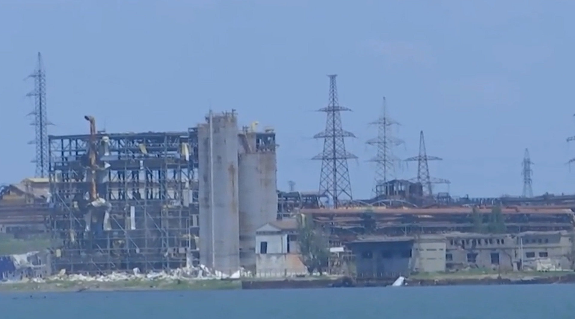 俄媒公布从海上拍摄的亚速钢铁厂现状:车间和沿海基础设施被毁