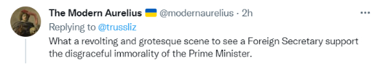 还有英国网友称,“看到外交大臣支持首相可耻和不道德的行为,是让人感到多么反感和可笑”。↓
