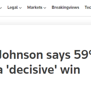 路透社:英国首相约翰逊称获59%的支持率是“决定性”的胜利