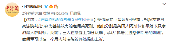 俄媒:在乌作战的3名佣兵被判死刑