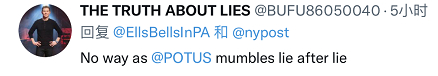 对此,另一名网友回答:“不,拜登嘀咕了一个又一个谎言。”