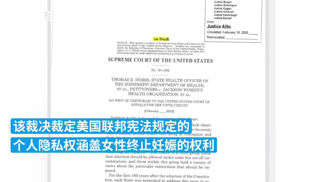 “这些权利不支持堕胎的权利。同样地,我们认为宪法不赋予堕胎权的结论,也不会以任何方式削弱这些权利,”阿利托在《美国政治新闻网》(Politico)发布的意见草案中写道。