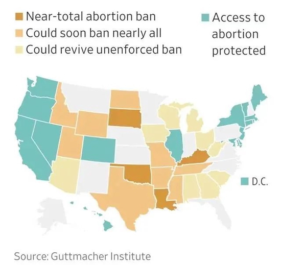 最高法院的这项最新裁决将赋予各州制定堕胎法的权力,预计几乎一半的州将宣布堕胎为非法或严格限制堕胎。法院意见书称:“宪法没有赋予堕胎权;‘罗诉韦德案’裁决被驳回;规范堕胎的权力还给了人民和他们选出的代表。”
