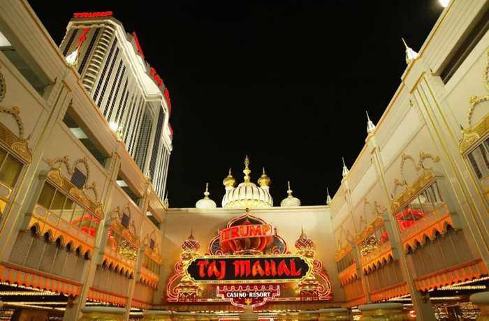 ·那是特朗普在曼哈顿拥有的第一家酒店。图为1978年,特朗普(左一)和时任纽约州州长休·凯里(右二)在看酒店设计概念图。 一起盘活了特朗普泰姬陵赌场度假村↓↓